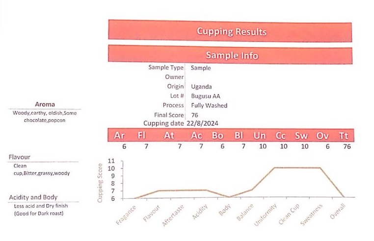 Moisture = 12.8%, primary defects 1%, secondary defects 13%, TT = 14%
